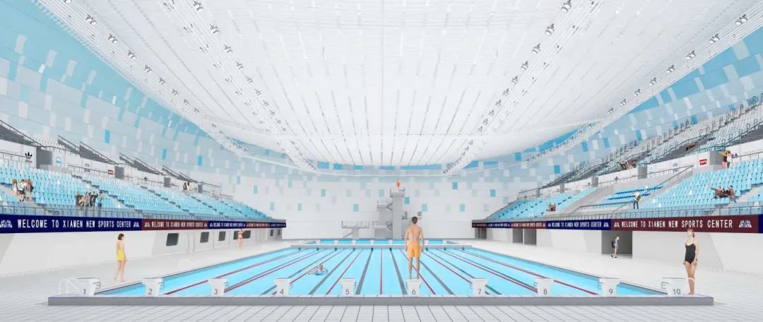 廈門市新體育中心位于“一場兩館”分別為白鷺體育場、鳳凰體育館(含訓練館)和白海豚游泳館。其中,白鷺體育場——這座鋼結構建筑融合了傳統閩南大厝的曲線神韻,是一座可以看海的體育場,2023年的亞洲杯部分比賽就將在這里進行。
